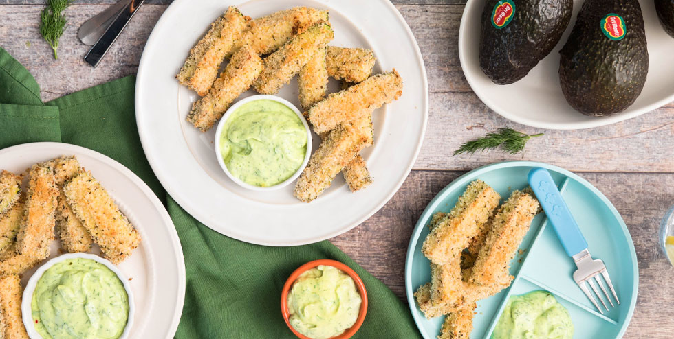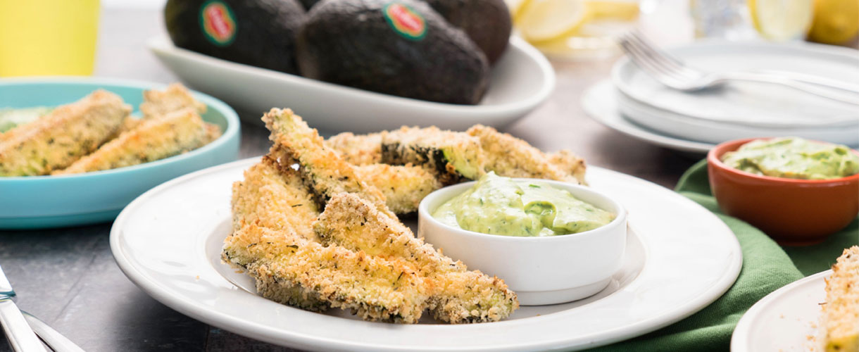 Patatine di zucchine al forno con salsa ranch all'avocado
